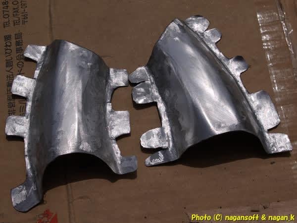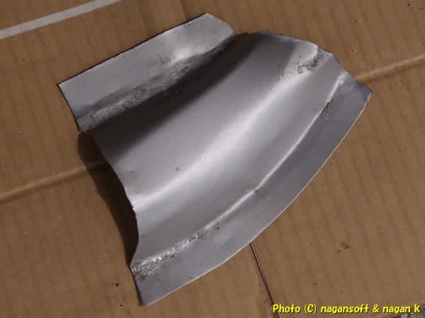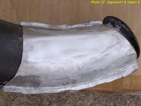 そもそも、この上に直接鉄板を当てて叩いてカバーを整形したんです。その打撃でパテははがれずです。