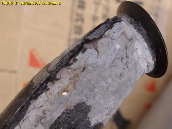 この状態にてハンマーで軽くしばいてもパテがはがれる気配ありません。