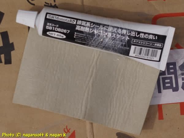 排気系シールに使える(耐熱型)液体ガスケットと、私には使いこなせずに無駄にしてしまったマフラー穴開き修理キットに入っていた押さえるシートです。