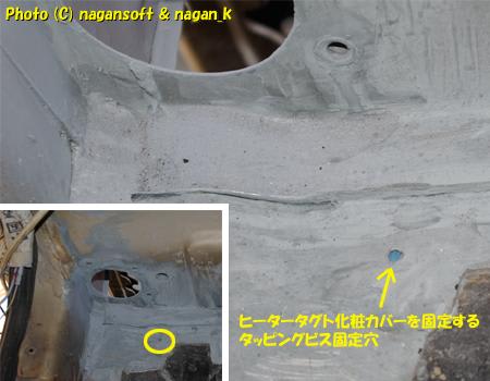 ヒーターダクトの化粧カバーを固定するタッピングスクリューのネジ穴でした。