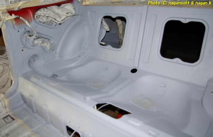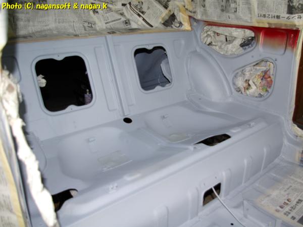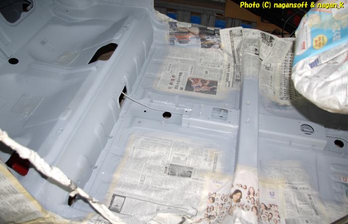 この後も、リヤシートサイドとか、床をマスキングして、と、文章にすると簡単ですが、かなり苦戦してマスキングしています。