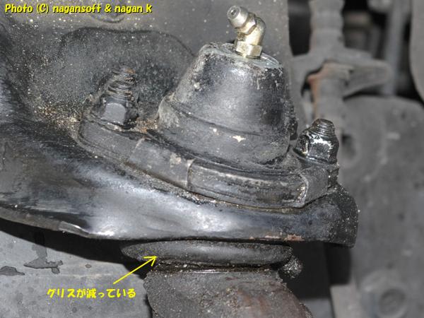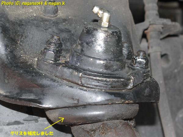前回にタイヤ―ローテーションしたときに、ポールジョイントのグリスニップル先端からグリスを吹いているのを発見してます。