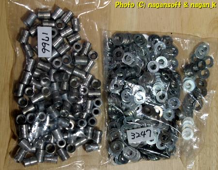 右のものがM6の平ワッシャーですが、これが鉄で生地(メッキがされていない)なんです。それが500枚入りです。