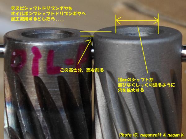 オイルポンプドライブシャフトのドリブンギヤを加工流用してなんとかしよう作戦の続きです。