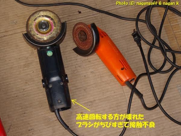錆屑耳をカットしているときに、ハンドグラインダーが回らなくなった。