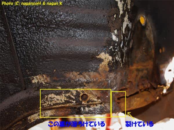 フェンダーエプロンが裂けていると指摘していた箇所については間違いなく裂けてました。