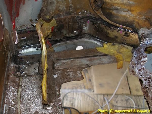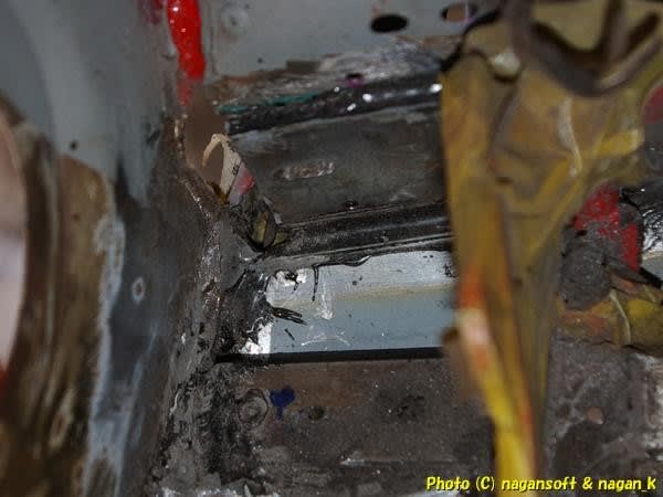 先頭角の部分は錆取りと塗装葉がしをしなければなりません。