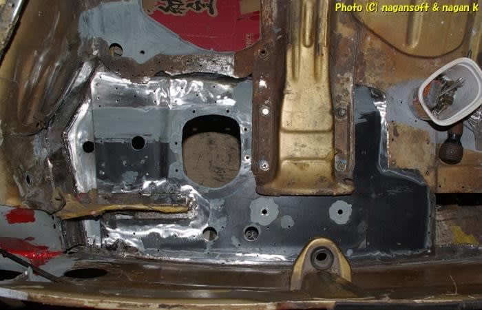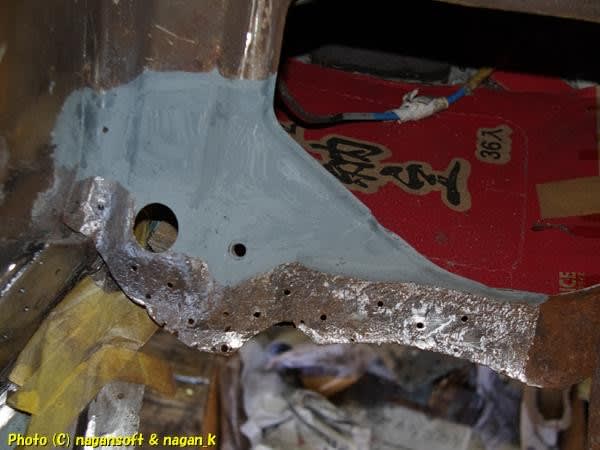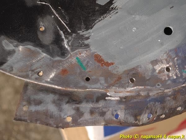 錆取り研磨します。バネルボンドの糊代になりそうな部分を大まかに塗装剝がしします。