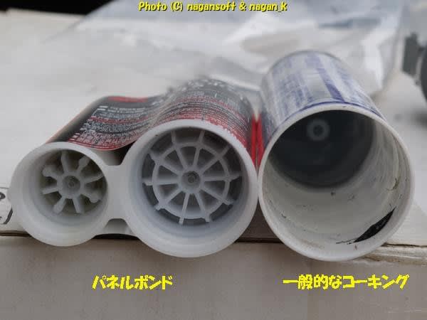 パネルボンドと一般的なコーキングシールとの筒比較です。