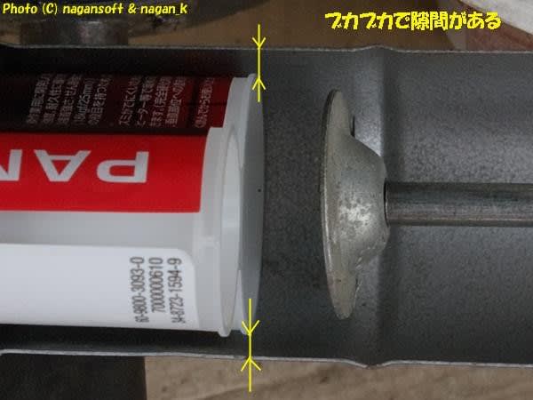 パネルボンドの太い筒側がガンに綺麗にはまるのかと思いきや、ガンの中で遊んでいるじゃん。隙間開いているじゃん。