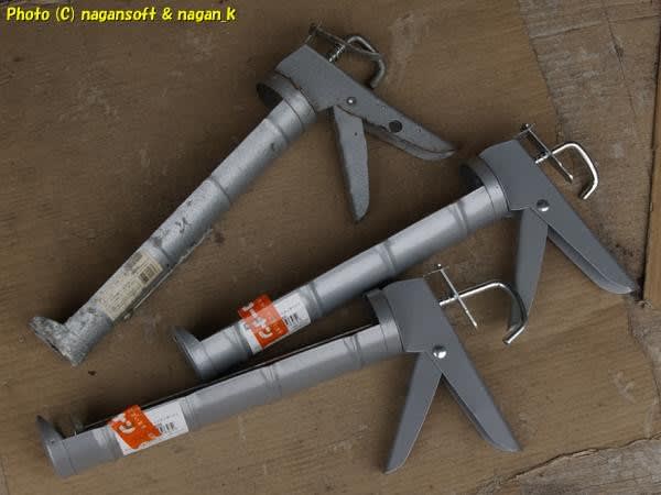 私が20年愛用しているガンと、ホームセンターで特売されていた新品ガン2本です。