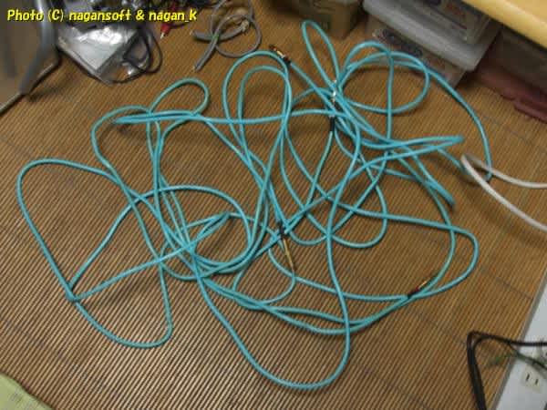 ぶった切ったものが長い時は私がもらってくるのよ。だって片方のプラグを付けたら使えるじゃん。ってことでLANケーブルは買うものではなく、切れ端の片方をプラグ付けて再利用ってのが私のやり口です。そんなちょん切れたケーブルを多数キープしています。