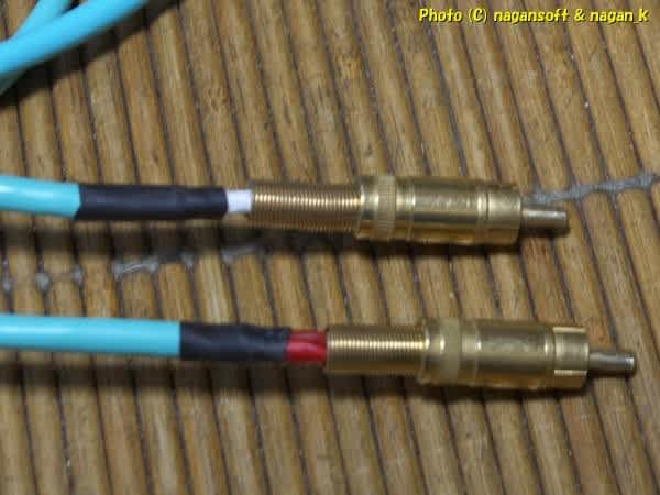 RCAプラグはあいかわらず謎の中古ケーブルから剥ぎ取ります。だってこの自作された中古ケーブルをけっこう持っているのよ。(写真以外にもあるよ)