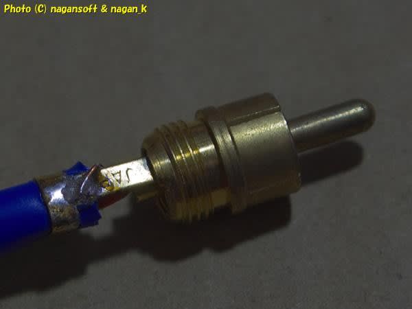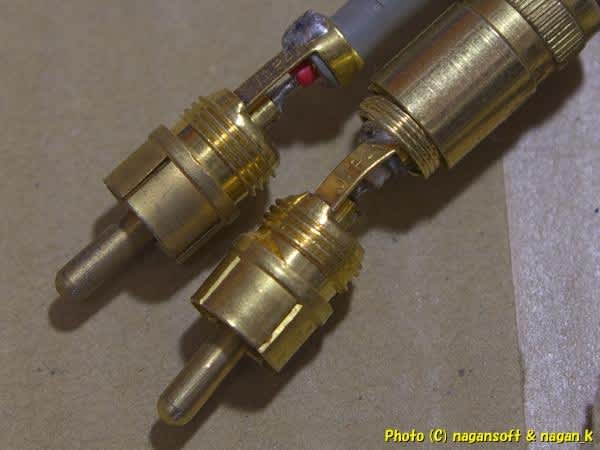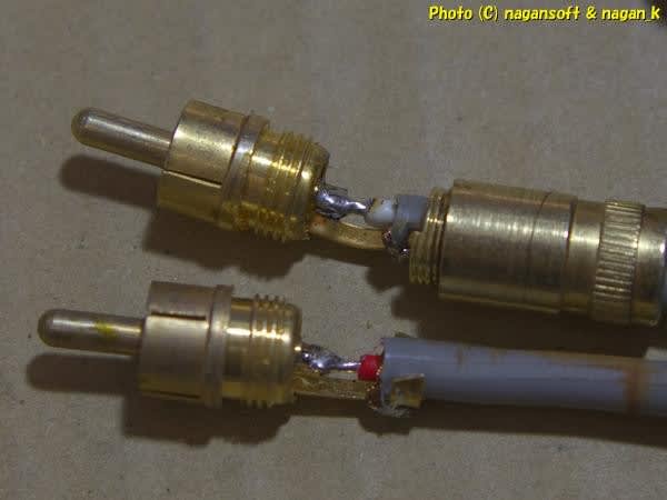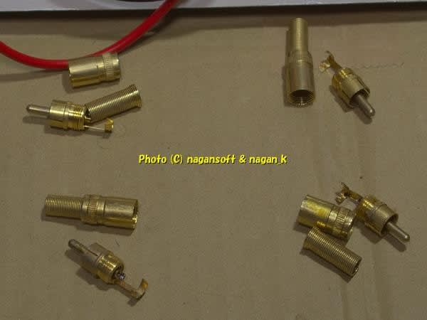 RCAプラグの新品を買う予算はないので手持ちの怪しい中古ケーブルからプラグを剥ぎ取ることにします。
