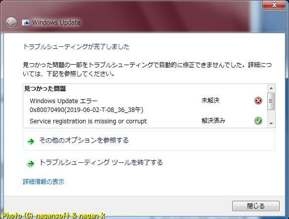 どうするかなー 「Windows Update 問題を修正する」ってMSのやつやってみるか?(MSのツールっていまいつのことが多いんだけど…) https://support.microsoft.com/ja-jp/help/10164/fix-windows-update-errors そのページから「Windows Update トラブルシューティング」ってやつをダウンロード
