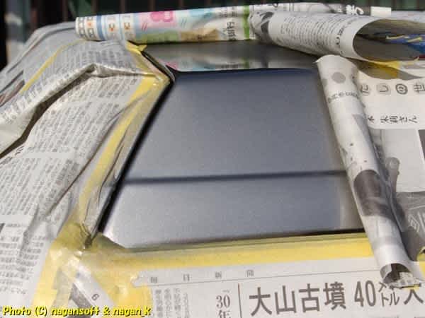 マスキングして0.6mmのスプレーガンでチマチマと塗装です。