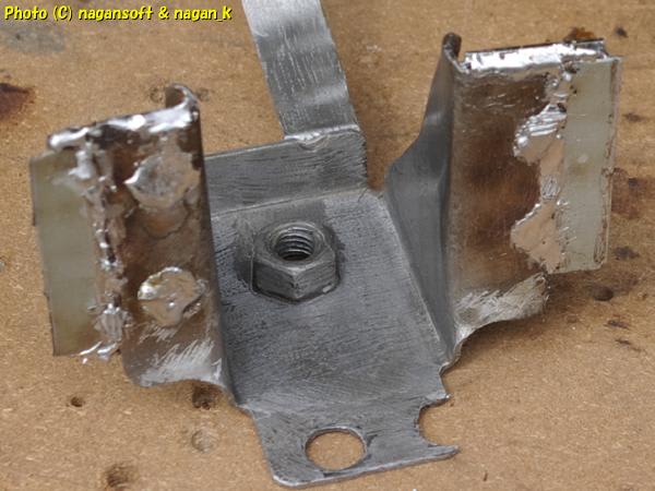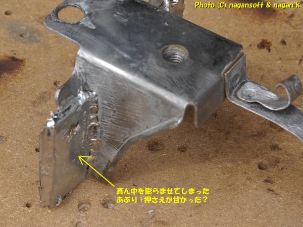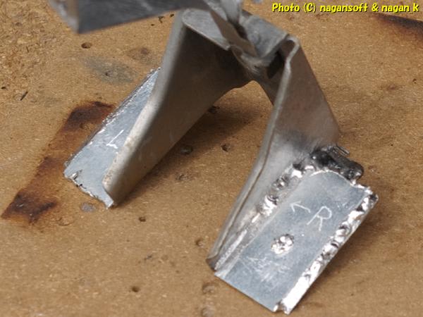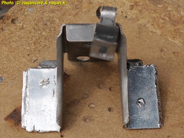 つまり、中央のハンダが溶け切らないうちに、外側のハンダが解けてバイスプライヤーで思いっきり締めていた力で鉄板が少し曲がってしまい、そのまま固定されちゃったってこと。