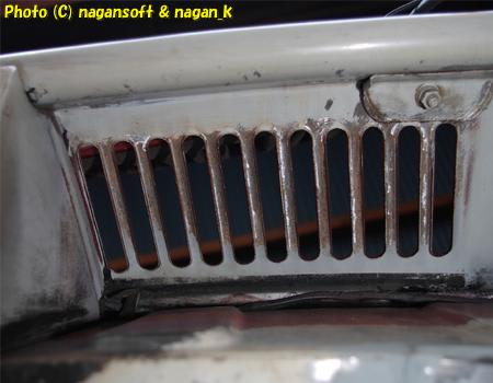 エンジンルームから上を見上げたら見える、エアダクトスリッドの裏面です。
