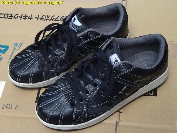 昨日から履き始めた、リサイクルショップで550円購入の未使用靴ですよ。