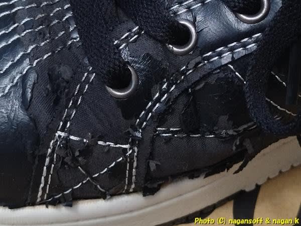 靴を使い始めるときに加水分解が始まっていることに気づいたやつです。