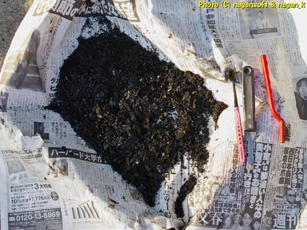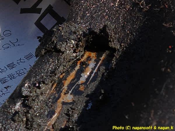 最初の一突きを油汚れがそれなりのところへスクレッパーを差し込むとこんなことになります。