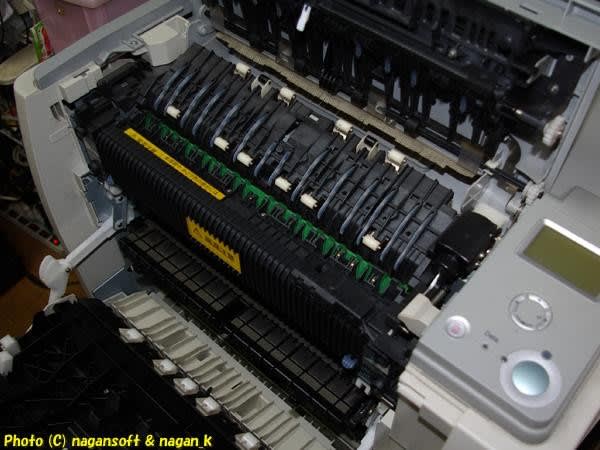フロントカバーを持ち上げて定着器さんこんにちは。