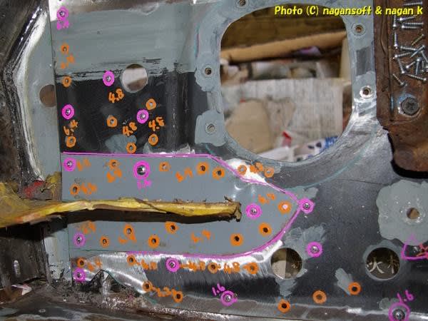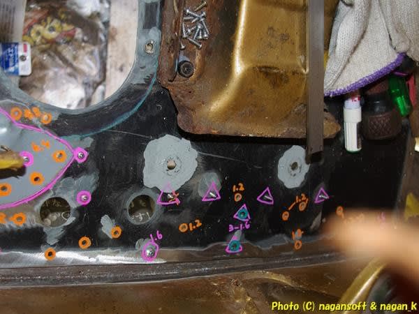 いよいよトランク床鉄板パネルボンド施工に向って最終微調整です。