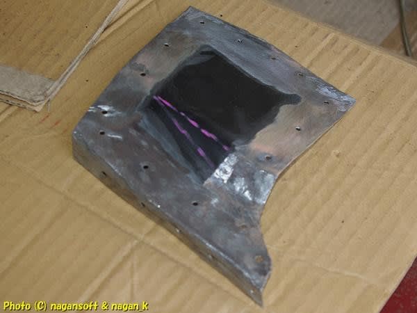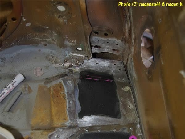 さあートランク床メイン鉄板のトランク室内部分は終わったので、次は助手席側の追加鉄板を微調整しましょう。(トランク床メイン鉄板の室内床との接続部分は後日です)