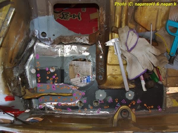 トランク床鉄板パネルボンド施工に当たっての錆取り関係は概ね終わったと思ってます。
