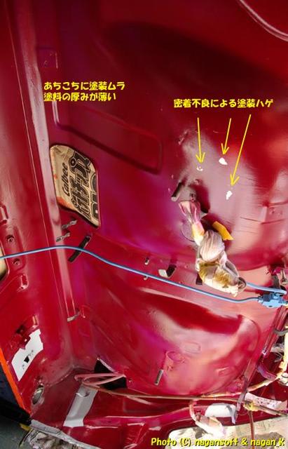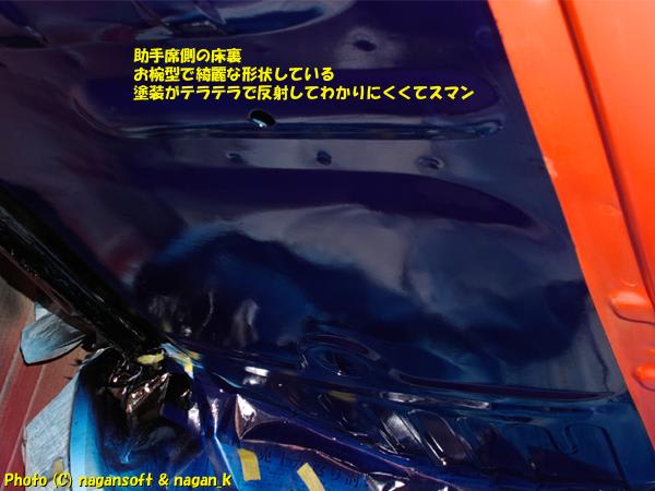 また車体下に潜りまして、床裏の塗り肌をよく点検します。