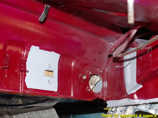 本当は鈑金修理すべきなのですが、運転席床は腐食が凄くて抜け落ちてもおかしくない状態だったので、とても鈑金できないと私は判断したのです。ついてはハンダで対策して固定したのです。
