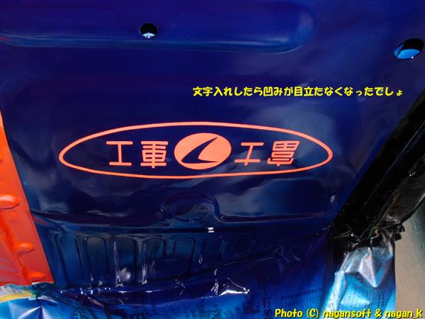 車体の床裏に文字入れしてやった。こんなところにふざけた文字入れしている車ってそんなにいないでしょ。(はっきりいって私はバカです)