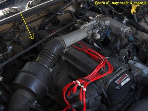 スロットルボティー冷却のために冷却水ホースが2本繋がってるんよ。