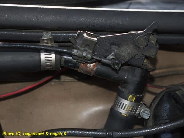 案外盲点なのがラジエターとリザーブタンク接続ライン。