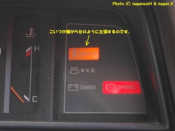 わかった。わかった。ランプ切れているのわかったから、警告灯キャンセル機能はないのかよ。と思うのですが、切れた電球を交換するまではしつこく嫌がらせビームを放ちつづけるのです。