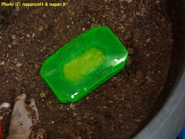 鉢植えに置くのが味噌みたいで、土の上だと虫の食いがいいのです。(鉢植えに虫が巣食っているのではないですよ)