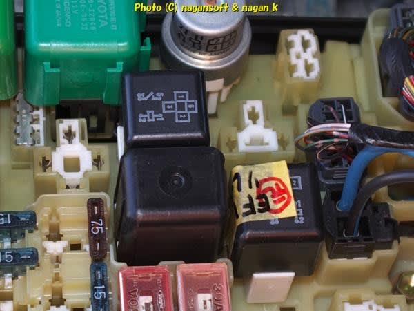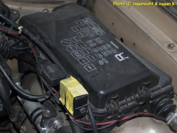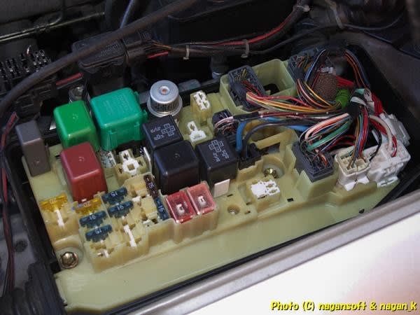 コンピューターへの電源ヒューズと起動するためのリレーなどが入っているリレーボックスを開けます。