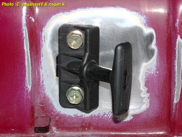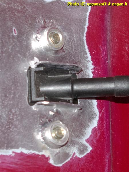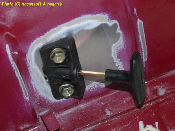 R-2君、エンジンフードオープナー流用加工-2日目-オープナーつまみ取り付け
