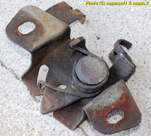 で、なんとか取り外せたキャッチ部分です。(というかボルトが折れた瞬間にキャッチは取り外せてます、残りの折れボルト摘出に苦戦しただけ)