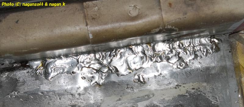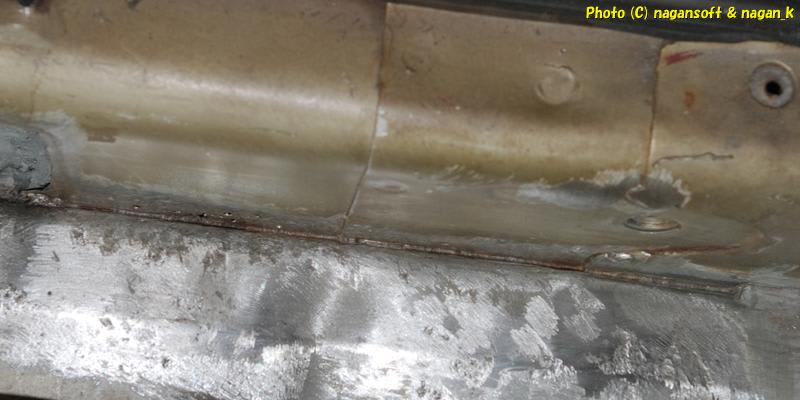 余剰ハンダの研磨、および、突合せ鉄板の整形をします。