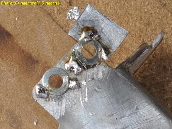 仕方がないのでワッシャーをハンダで貼り付けます。