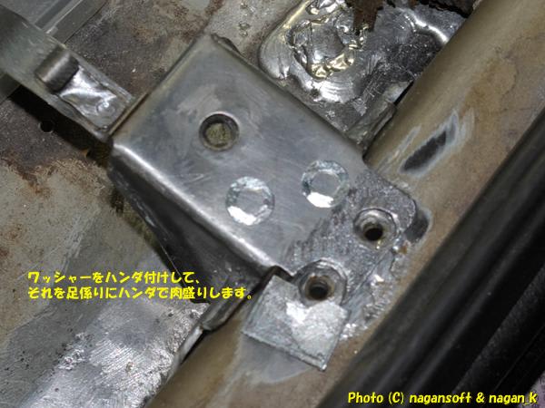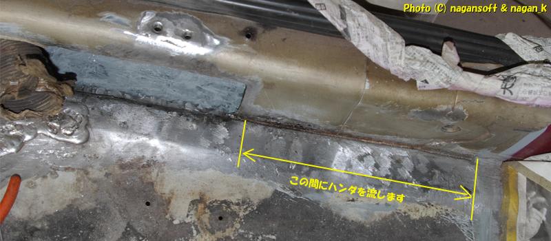 シートブラケットを合わせていくときにサイドシルを叩きますので、こういう崩壊の恐れがありそうな部分は先に処置しておこうという魂胆です。