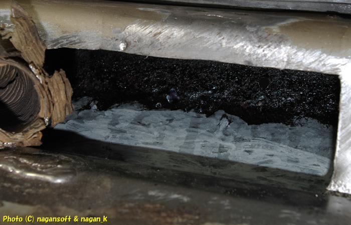 まずは、数日前にサイドシル内部に処置をした錆転換剤の確認です。