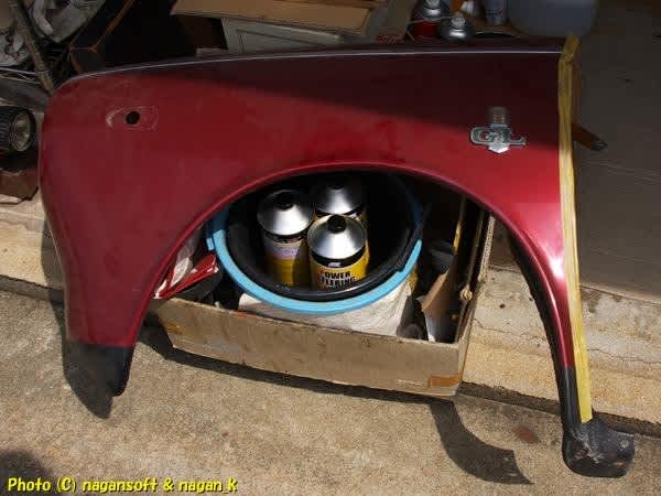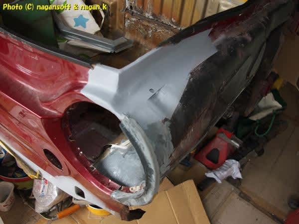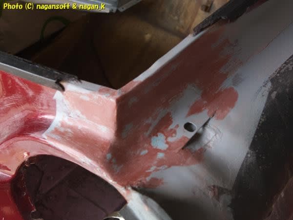 凹み箇所の板金終えたフェンダーを取り付けます。