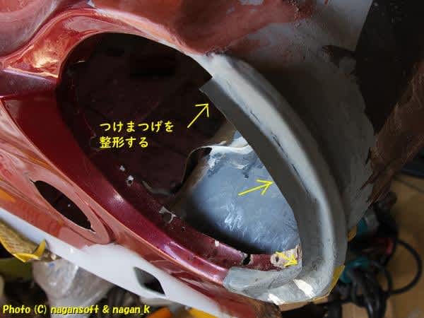 ヘッドライト縁との合わせ部分は、ある程度寄り添える程度にまでなりました。