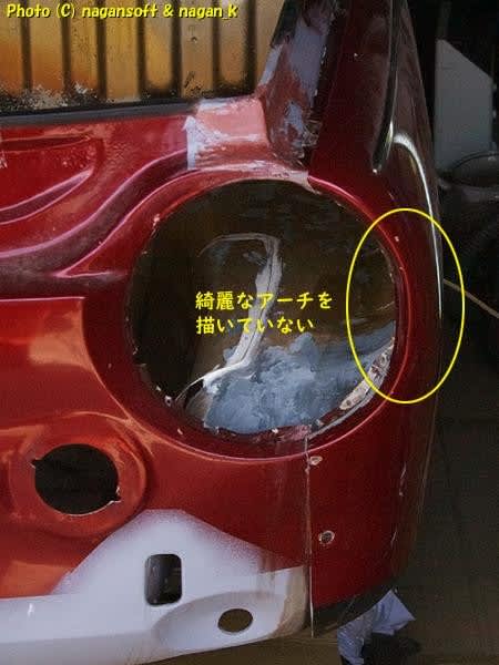 フェンダーの先端部分が綺麗なアーチを描いていないのよ。