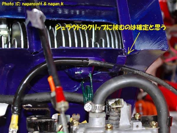 問題はセルモーター奥の方でワイヤーを強引に曲げるのか?なのです。