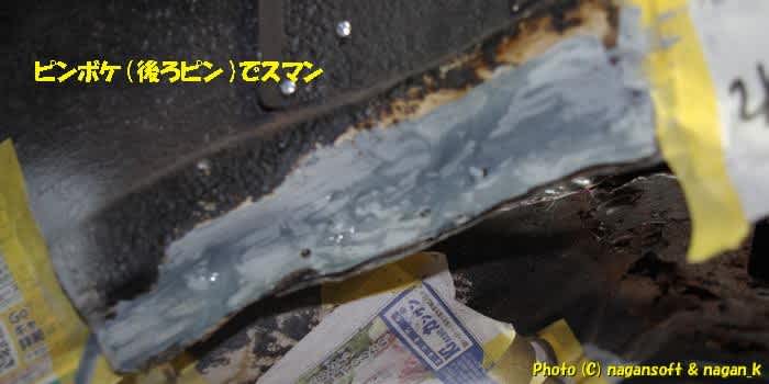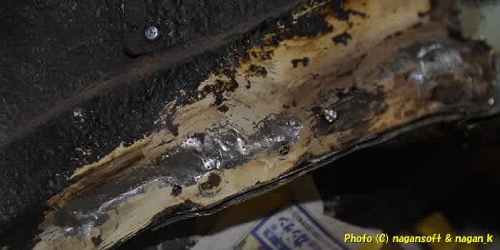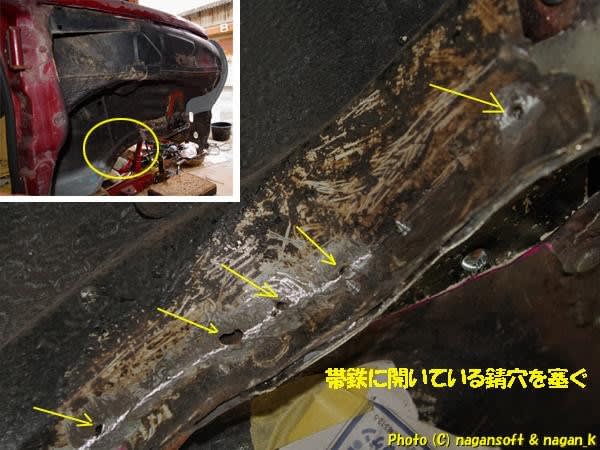 R-2君、右前フェンダー内下端の強度出し帯鉄の錆穴塞ぎ