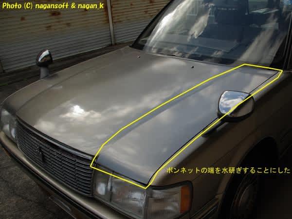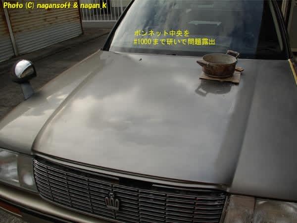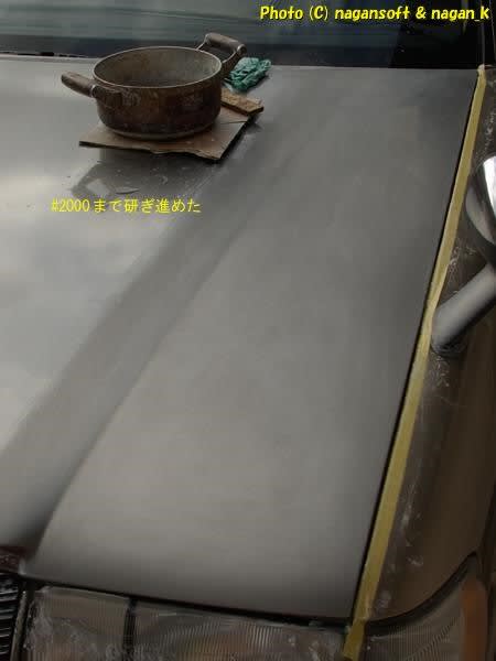 本日はボンネットの反対端を塗装研ぎ出し研磨します。