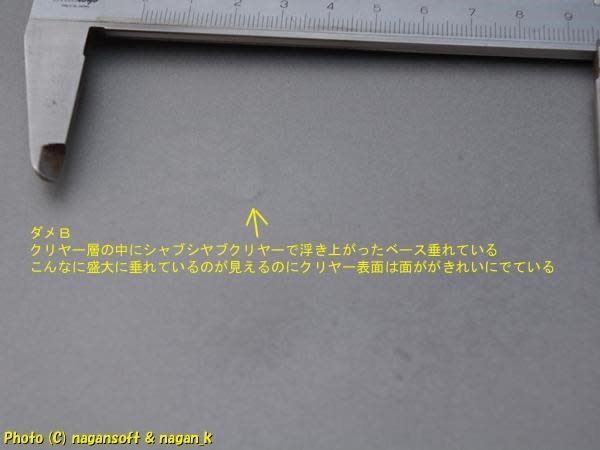 「ダメB」部分は、メタリックが浮き上がってクリアー層の中で固まってます。